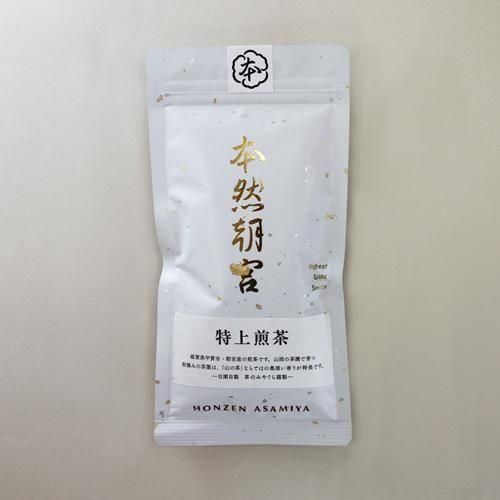 1日の寒暖の差が大きく、霧深い朝宮の気候が育んだ香り高く、自然の甘みを持つ煎茶です。当店では一番茶のみを使用し、香りを重視するため伝統の蒸し加減にこだわっています。そのため水色は山吹色。3〜5煎お楽しみいただけます。